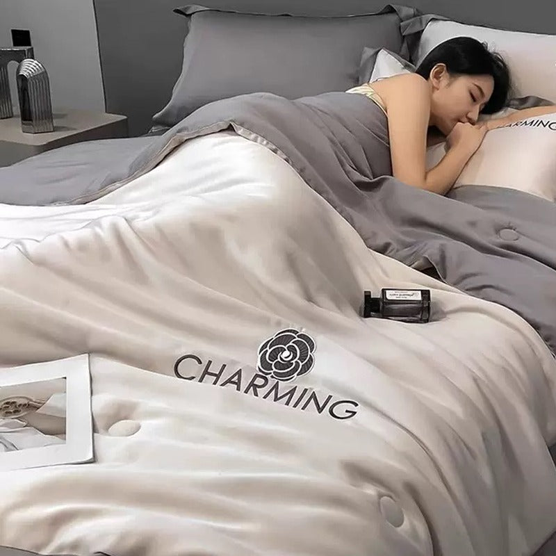 Quilted Cooling Comforter Set, Silky Smooth 4-Piece Bedding Set with Bedsheet & Pillow Covers