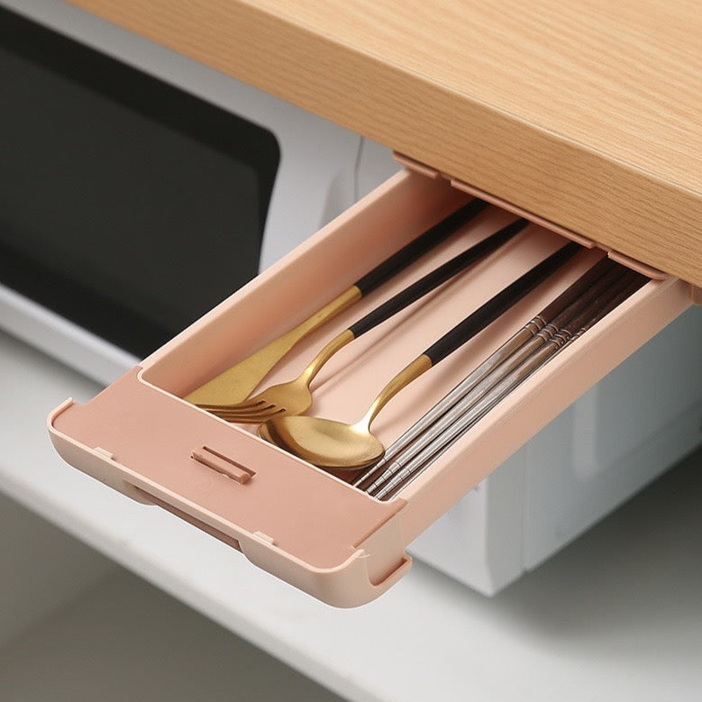 Hidden Drawer Pencil Rack – Self-Adhesive Under Table Storage Box Tray for Student Office Use