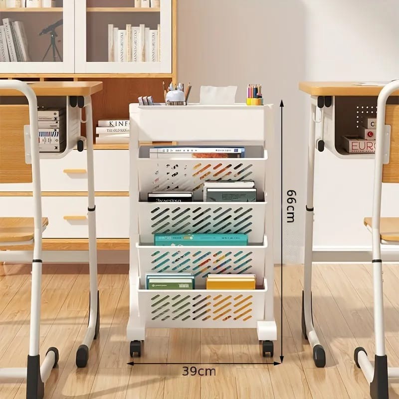 Multi-layer Movable Shelf, Bookshelf Rack Storage Organizer with Wheels