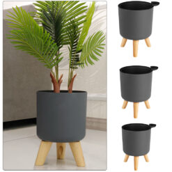 Floor-standing Round Flower Pot with Self Watering Drainage System With Wooden Legs