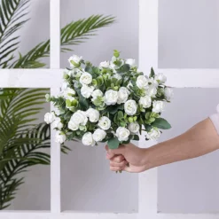 10 Heads Artificial Flower White Silk Rose Eucalyptus Leaves Home Decor