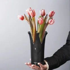 Black Cerami Vase Abstract Tabletop Minimaliste Art Creative