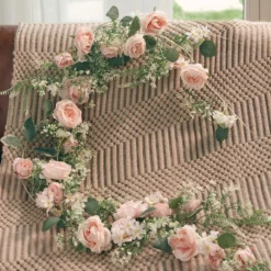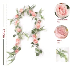 1.7M Pink Silk Rose Peony Garland Artificial Flowers Eucalyptus Leaves Vines Wedding Home Decoration
