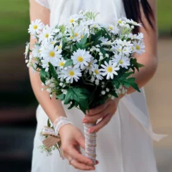 5Pcs 50cm Artificial White Daisy Flower Bouquet Fake Green Leaves Home Decoration