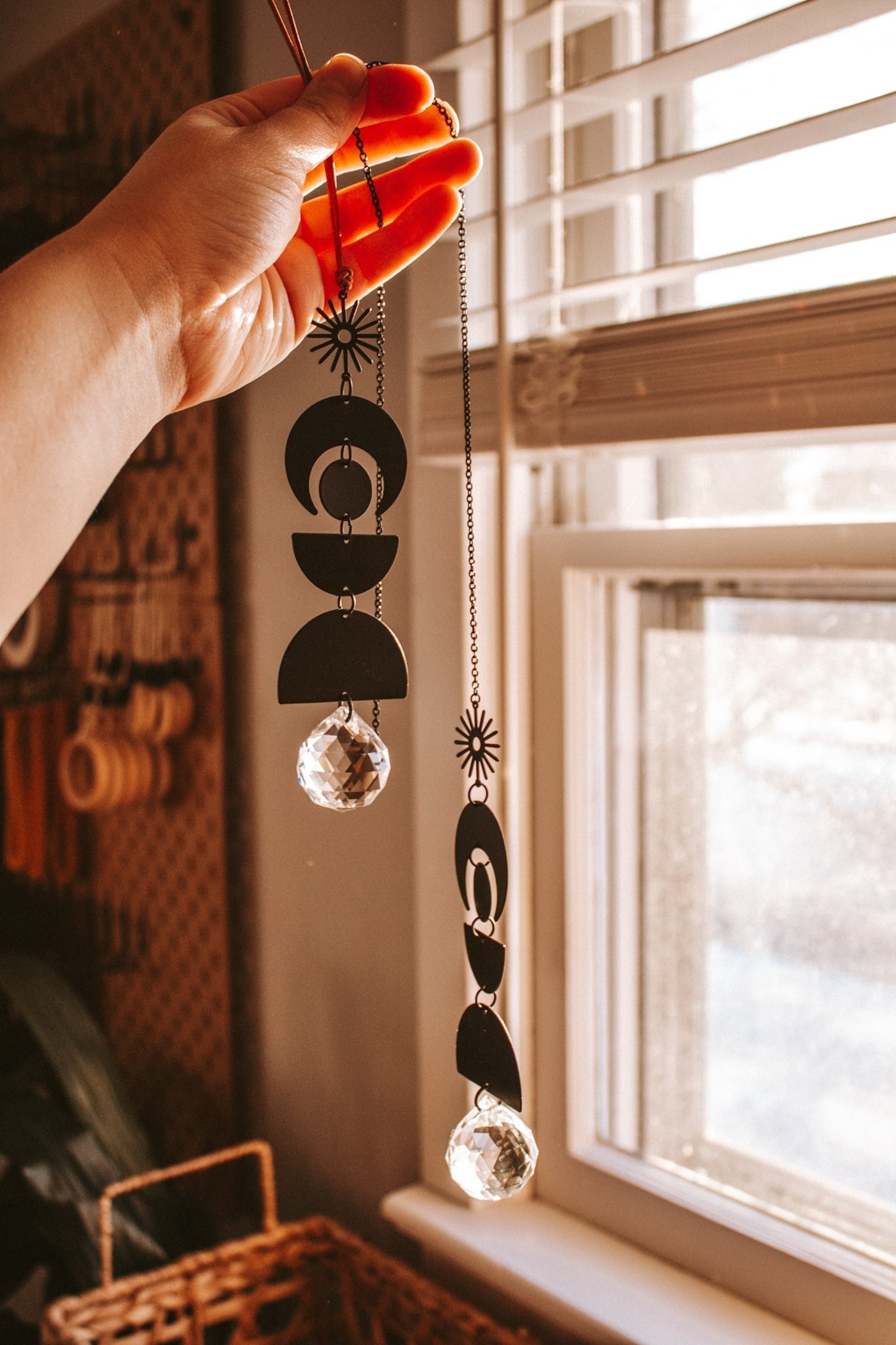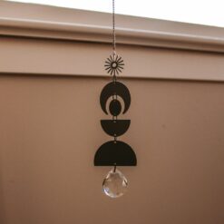 Black Metal Sun Catcher, Hanging Crystal Prism, Boho Home Decor
