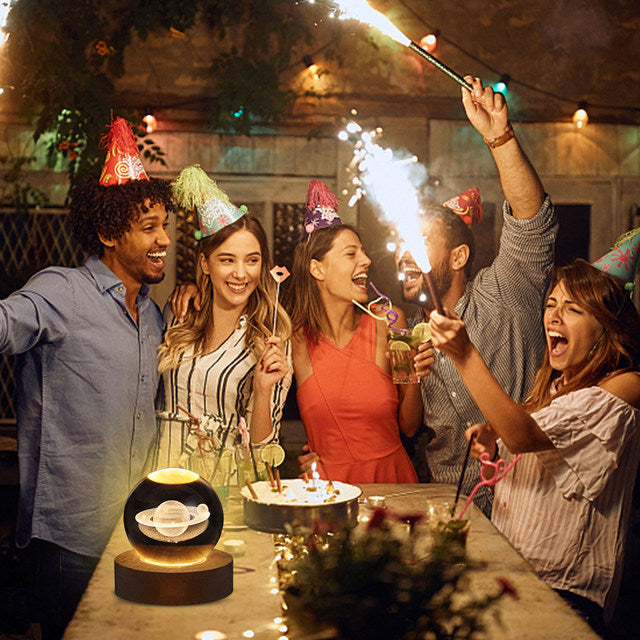 Crystal Ball LED Night Light, 3D Glowing Galaxy Lamp with Wood Base for Home Decor