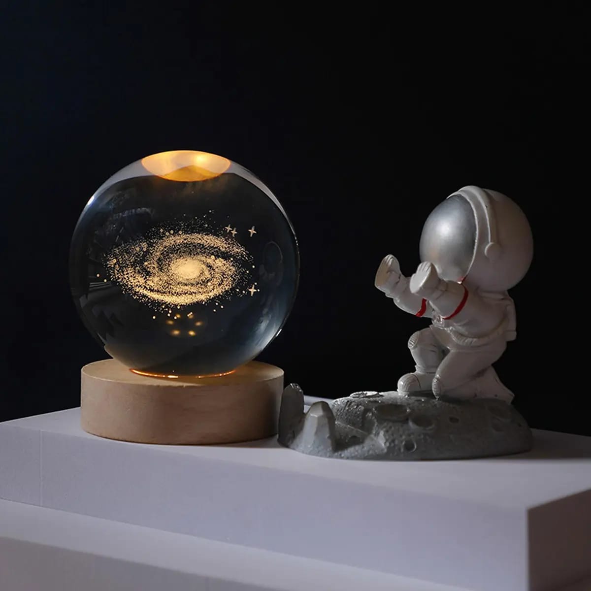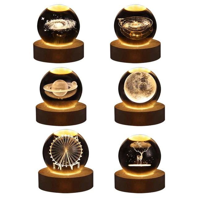 This item: Crystal Ball LED Night Light, 3D Glowing Galaxy Lamp with Wood Base for Home Decor