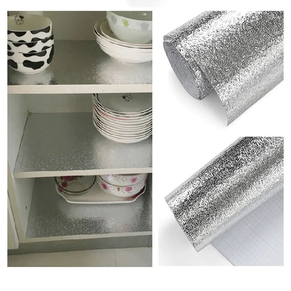 Waterproof Oil Proof Aluminium Foil Sticker Self Adhesive Wallpaper Kitchen (Silver)